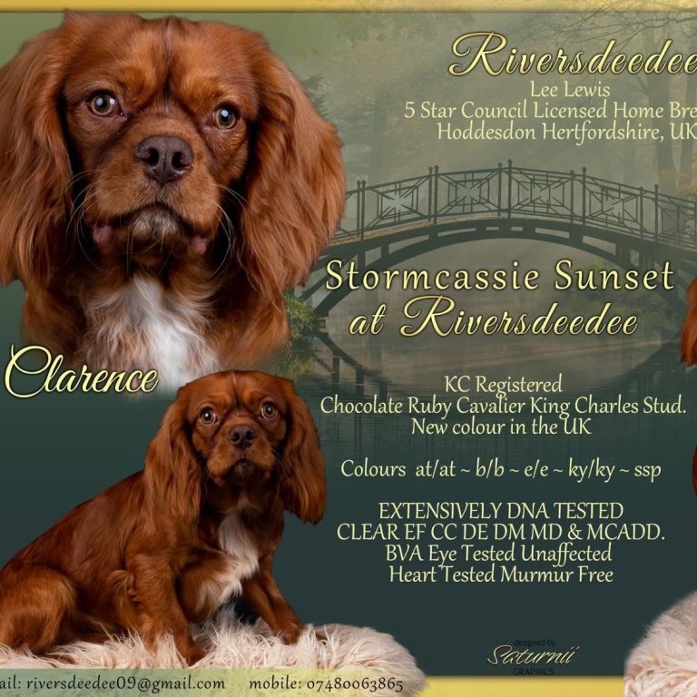 Our extensively health-tested Kennel Club Registered Brown Ruby Cavalier is available for stud duties only. He is a beautiful deep red has amazing hazel / green eyes. He has excellent structure He has a outstanding temperament, A true gentleman with the girls — calm, gentle, friendly, and confident. He has a lovely playful nature and is excellent with other dogs, and a proven track record as a reliable, successful stud,