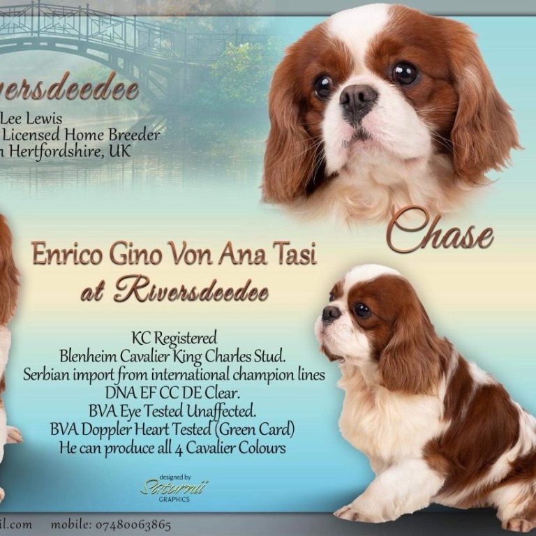 Our health-tested Kennel Club Registered cavalier King Charles stud imported from Serbia. He is available for stud duties only. He is a Blenheim with excellent structure He has a outstanding temperament, A true gentleman with the girls — calm, gentle, friendly, and confident. He has a lovely playful nature and is excellent with other dogs, and a proven track record as a reliable, successful stud,