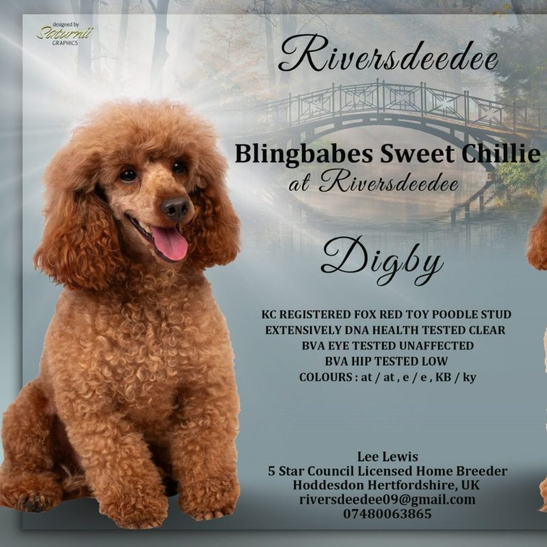 Our extensively health-tested Kennel Club Registered Toy Poodle is available for stud duties only. He is a beautiful deep fox red with excellent structure He has a outstanding temperament, A true gentleman with the girls — calm, gentle, friendly, and confident. He has a lovely playful nature and is excellent with other dogs, and a proven track record as a reliable, successful stud,