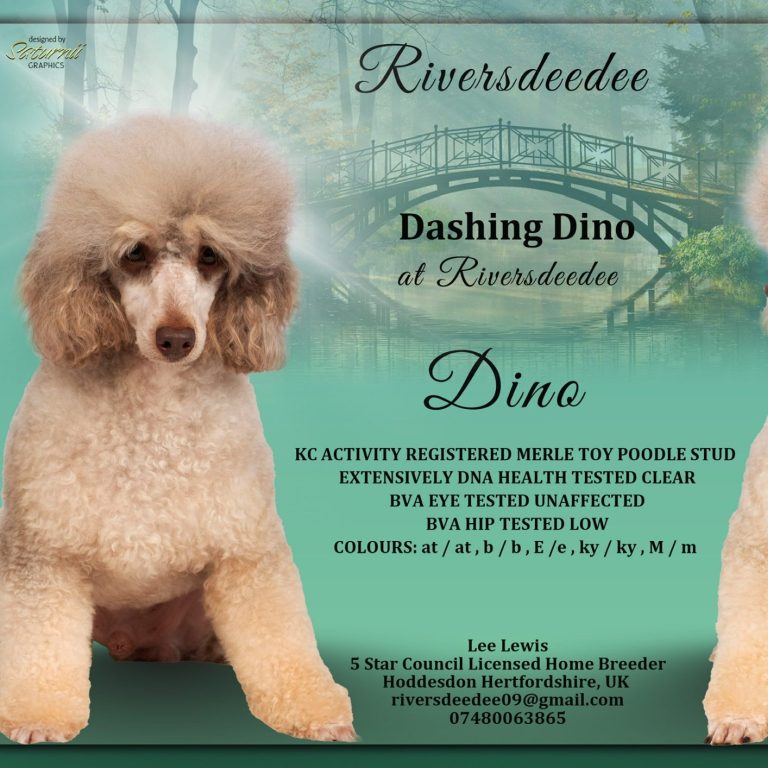 Our extensively health-tested Toy Poodle is available for stud duties only. He is a beautifully marked merle, with excellent structure He has a outstanding temperament, A true gentleman with the girls — calm, gentle, friendly, and confident. He has a lovely playful nature and is excellent with other dogs, and a proven track record as a reliable, successful stud,